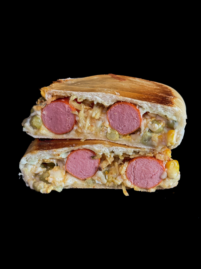 Com duas salsichas suculentas, molho temperado, nossa maionese caseira a base de leite, milho, ervilha, batata palha e queijo mussarela, tudo prensado na chapa para uma explosão de sabores. Simplesmente irresistível! 🌭🔥😋